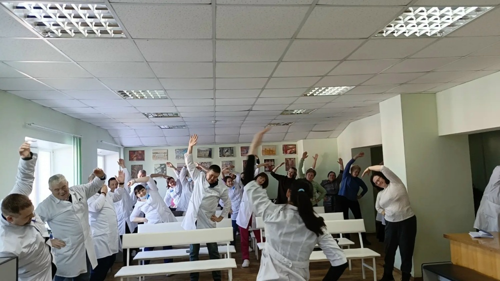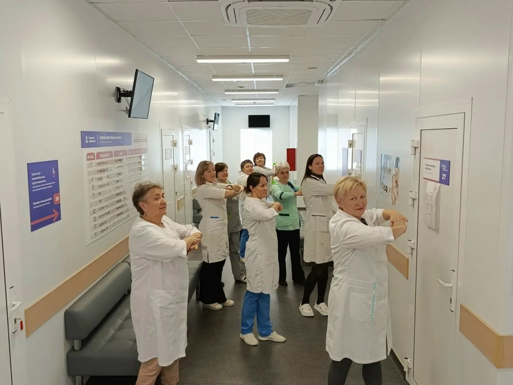 Делимся, как проходит одна из таких физкультминуток в нашей больнице. Упражнения не требуют специального оборудования или отдельного помещения — их легко выполнять прямо на рабочем месте, без отрыва от повседневных задач.